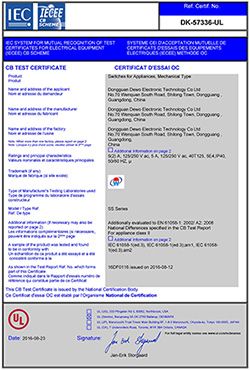 德傲微動開關(guān)CQC CB CE證書正式下發(fā)